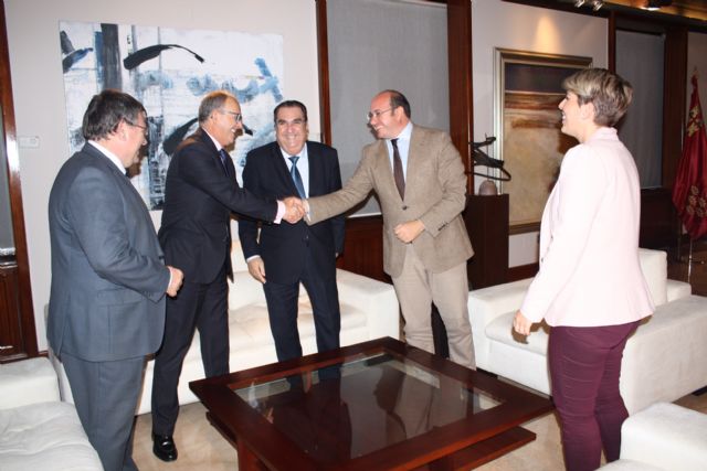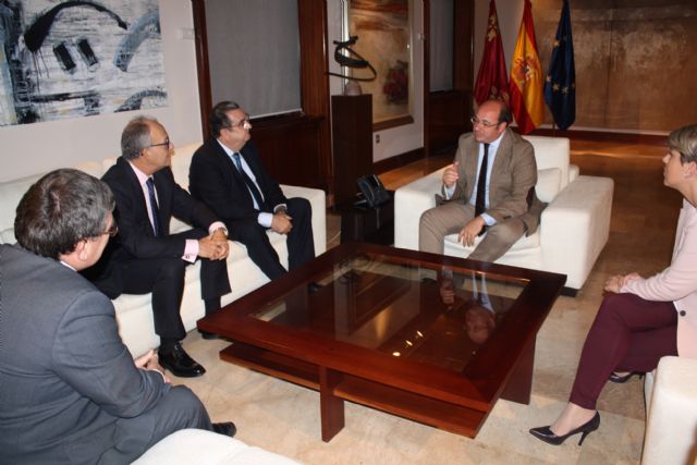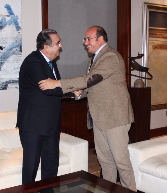 El jefe del Ejecutivo regional, Pedro Antonio Sánchez, se reunió hoy en el Palacio de San Esteban con el presidente de la Agrupación Sardinera de Murcia, Gregorio González, quien trasladó a Pedro Antonio Sánchez un avance de los actos y proyectos previstos para las fiestas del próximo año, así como algunas novedades que se incorporan al programa.