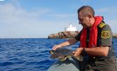 01/07/2016 San Pedro del Pinatar Liberan una tortuga boba junto a las Islas Hormigas tras quedar atrapada en una red