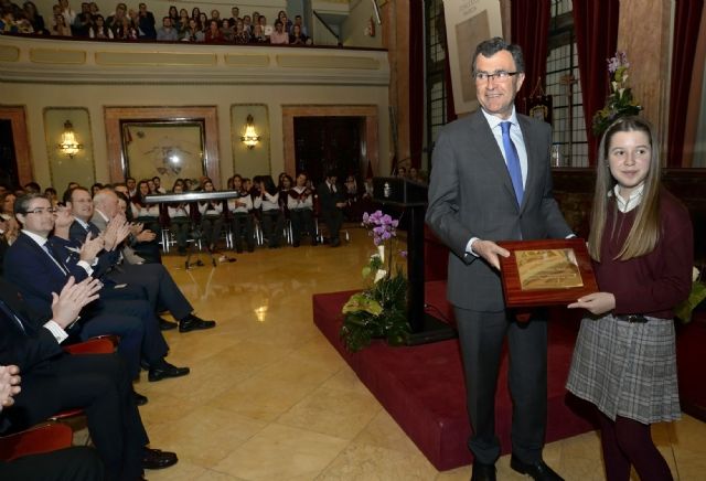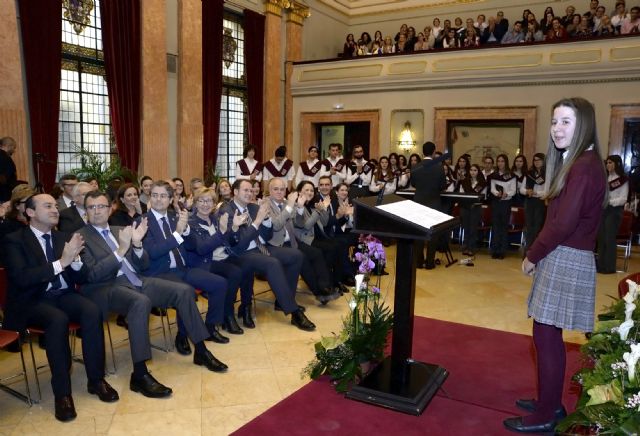 El Salón de Plenos acogió esta tarde el Pregón del Ángel de la Semana Santa de Murcia 2017, que leyó la alumna del Colegio San Buenaventura-Capuchinos Victoria Acosta Pacheco.