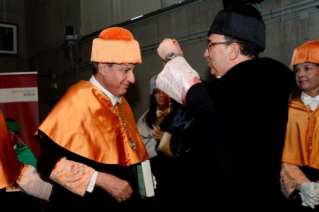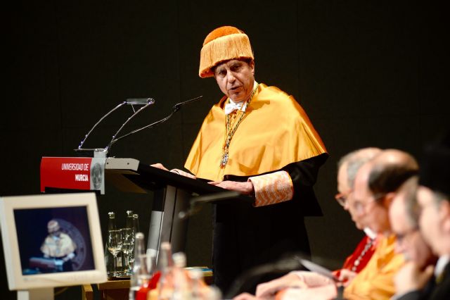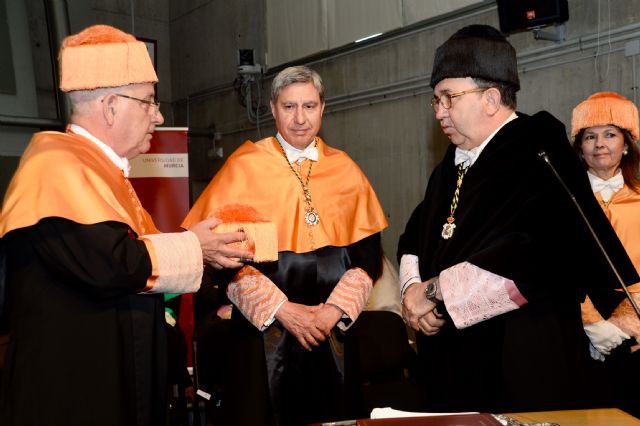El catedrático emérito de Economía Aplicada de la Universidad Complutense de Madrid José Luis García Delgado ha sido investido hoy doctor honoris causa de la Universidad de Murcia (UMU), en una ceremonia que ha tenido lugar en la Facultad de Economía y Empresa de esta institución docente.