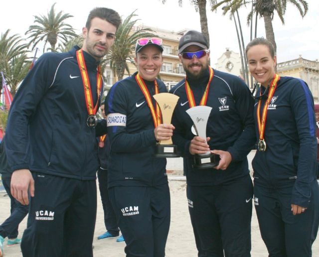 En voley playa, el equipo femenino conseguía el oro y los chicos lograban la plata. En triatlón, la UCAM se dABA un baño de oro en San Pedro del Pinatar con las victorias de Ana Mariblanca y David Castro en sus respectivas categorías que valieron a la UCAM para sumar también el oro por equipos.