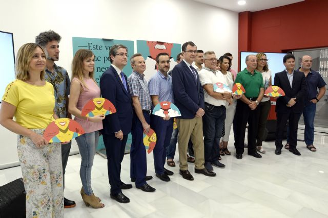 La campaña también se difundirá en radio, televisión y periódicos y diarios digitales. Además, en colaboración con Radio Murcia, se van a repartir 10.000 abanicos con la imagen de la Feria en las playas de la Región.