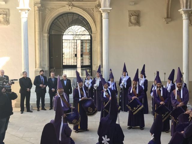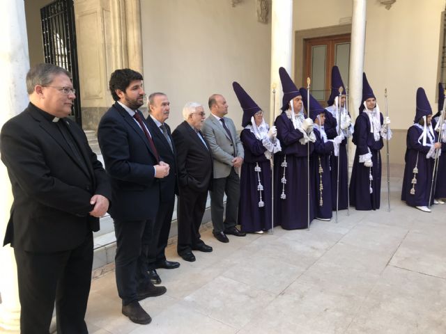 El presidente de la Comunidad, Fernando López Miras, ha recibido en el Palacio de San Esteban a la Convocatoria de la Real y Muy Ilustre Cofradía de Nuestro Padre Jesús Nazareno de Murcia.