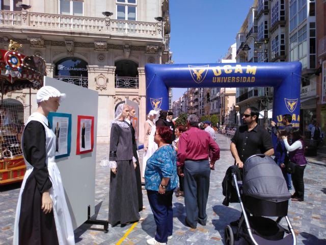 Durante toda esta mañana, quienes pasaban por la Plaza del Icue han disfrutado de la historia de la enfermería a través de la muestra de 13 trajes que recreaban los que utilizaban los profesionales sanitarios de esta área en distintas épocas, pero además han podido tocar las recreaciones de piernas, brazos, cerebros, corazones, … que utilizan los alumnos del Grado en Enfermería de la UCAM en el Campus de Los Dolores.