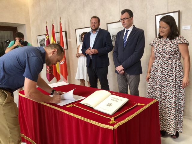 El alcalde de Murcia, José Ballesta, junto al concejal de Modernización y Desarrollo Urbano, José Guillén, y la concejal de Tráfico, Seguridad y Protección Ciudadana, Lola Sánchez, presidió hoy el acto de toma de posesión de los cuatro nuevos agentes de la Policía Local, un servicio que se incrementará con más de medio centenar de nuevas plazas que se convocarán este mes de septiembre, y que supondrán un incremento del 10% de la plantilla del Cuerpo.