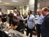 La concejala de Tráfico y Seguridad Ciudadana, Lola Sánchez, y el consejero de Presidencia, Pedro Rivera, han visitado esta mañana la sala de coordinación y gestión de emergencias que prestará una gestión y un servicio más eficaz gracias a un convenio entre Comunidad Autónoma y Ayuntamiento de Murcia.