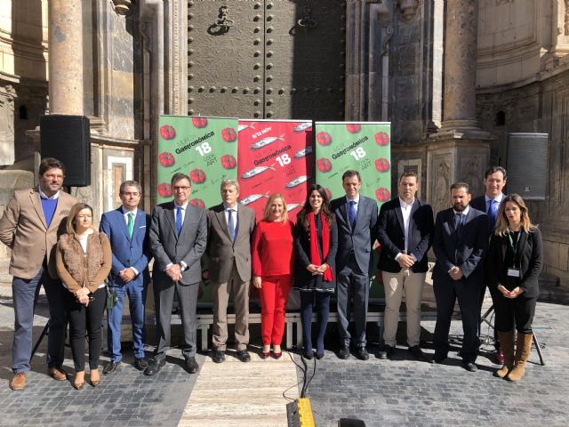 El alcalde de Murcia, José Ballesta, asistió hoy a la presentación de la VII edición del congreso Murcia Gastronómica 2018, que arrancará el viernes 9 de noviembre en el edificio anexo del Auditorio Víctor Villegas de Murcia y se prolongará hasta el lunes día 12. El acto contó con la presencia de la consejera de Turismo y Cultura, Miriam Guardiola, el director técnico del congreso, Sergio Gallego, el director general de La Verdad, Antonio González, y el director del diario, Alberto Aguirre.