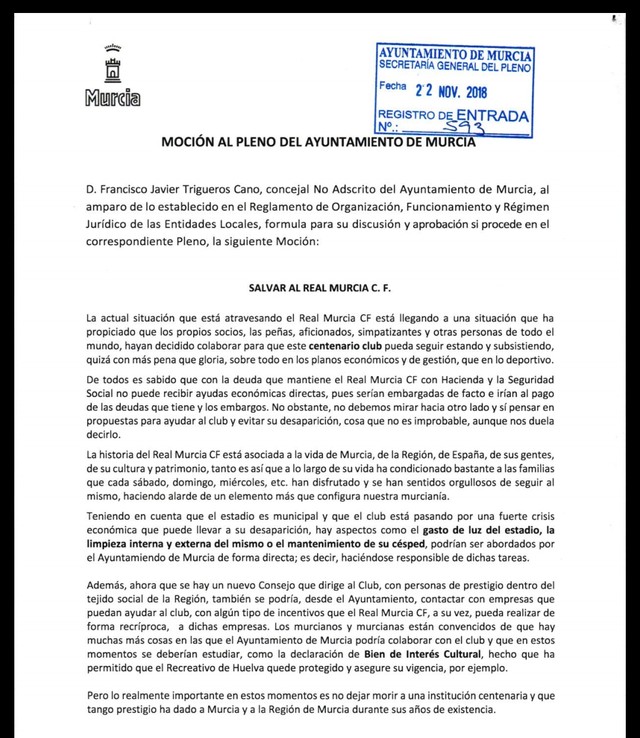Por un lado, salvar al Real Murcia de la situación que arrastra y por otro, la adopción de medidas sobre depósitos de residuos urbanos.