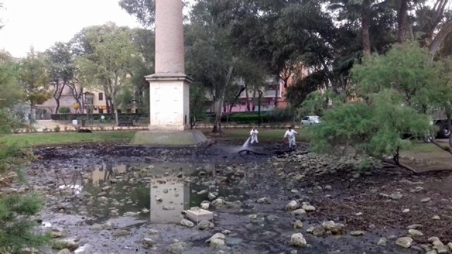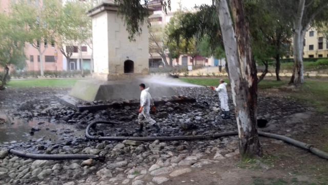 El Servicio de Parques y Jardines, que pertenece a la Concejalía de Modernización de la Administración y Desarrollo Urbano que dirige José Guillén, está realizando tareas de revisión, mantenimiento, reparación y limpieza lago situado en La Seda.
