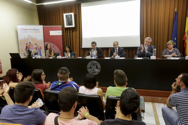 La Universidad de Murcia ha inaugurado este miércoles, 3 de julio, la octava edición del 'Campus Inclusivo, Campus sin límites', un proyecto concedido a UMU y UPCT a través del Campus Mare Nostrum, que permitirá a veinte jóvenes con discapacidad convivir diez días en el ámbito universitario para que puedan conocer todos los servicios y posibilidades que les ofrece la enseñanza superior. El acto oficial de apertura del Campus Inclusivo ha tenido lugar en el edificio de Convalecencia y ha contado con la presencia del rector, José Luján. La iniciativa está impulsada con el apoyo del Ministerio de Ciencia, Innovación y Universidades, la Fundación ONCE y la Fundación Repsol.