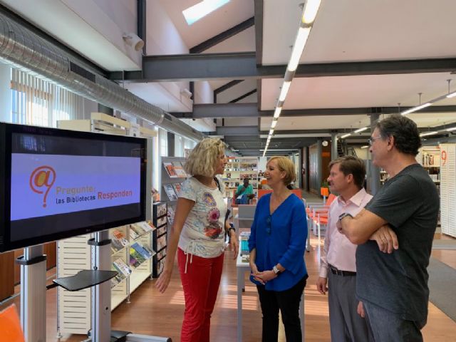 La concejala de Agenda Urbana y Gobierno Abierto, Mercedes Bernabé, ha visitado la Biblioteca Río Segura para conocer este servicio que desde 2008 ofrece información a los ciudadanos a través de internet.