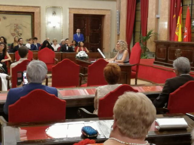 Mercedes Bernabé oficia este fin de semana sus primeros matrimonios como concejala del Ayuntamiento de Murcia. Esta función la pueden ejercer todos los ediles de la corporación municipal, en un turno establecido por el Servicio de Protocolo.