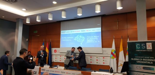 La Universidad de Murcia ha recibido un reconocimiento en el XIII Congreso ISACA Valencia, que se celebró los días 14 y 15 de noviembre bajo el tema 'Inteligencia Artificial Nuevos Retos en Auditoría, Seguridad y Gobierno de TI'.