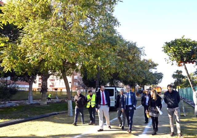 José Ballesta visitó las obras de este jardín, que lleva el nombre del carismático periodista deportivo murciano, fallecido hace un año; un nuevo pulmón verde en Ronda Sur que beneficiará a las familias de San Pío X, Santiago El Mayor y la pedanía de Patiño. El parque contará con una pista de baloncesto, otra de 'running', un gimnasio al aire libre y tumbonas para descansar, entre otras novedades. También se renovará el sistema de riego de este entorno, que se contralará telemáticamente, actuación alineada con la estrategia municipal 'Murcia Smart City'.