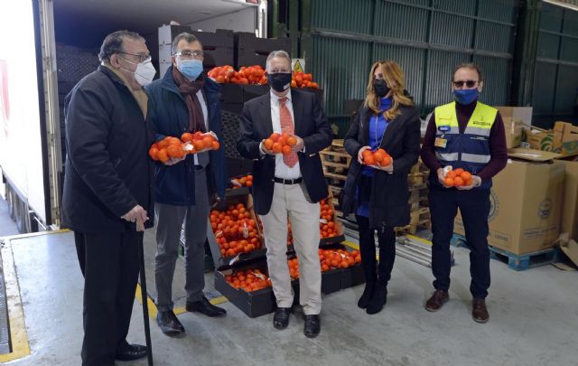 El alcalde de Murcia, José Ballesta, junto a la concejal de Derechos Sociales y Familia, Pilar Torres, ha visitado esta semana el Banco de Alimentos del Segura, que ha recibido un camión cargado de 15.000 kilos de clementinas, donadas por la empresa Eurogroup, especializada en el suministro de frutas y hortalizas. A este gesto solidario se suma otra donación realizada por Eurogroup, en este caso a Cáritas, que ha recibido 5.000 kilos de clementinas. El dispositivo de transporte ha sido gestionado de manera altruista por el Grupo Caliche, con su camión solidario.