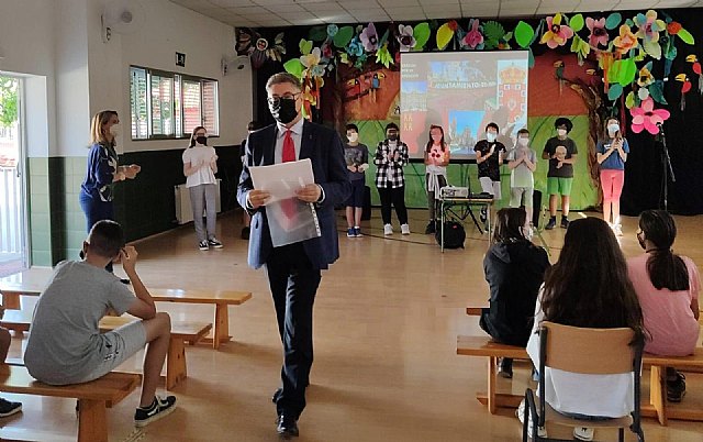 El concejal de Urbanismo y Transición Ecológica, Andrés Guerrero, ha visitado hoy el Colegio de Educación Infantil y Primaria Nuestra Señora de la Arrixaca, que está llevando a cabo un proyecto de estudio y conservación de la Huerta de Murcia. Este centro escolar, que ya consiguió el galardón Escuelas Verdes en el curso 2006-07, apuesta por la mejora ambiental a través de la sensibilización y la realización de actuaciones dirigidas a toda su comunidad escolar.