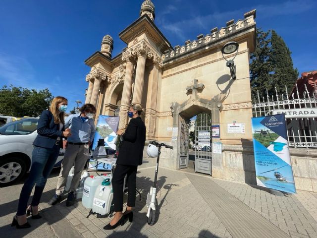 La concejala de Salud y Transformación Digital, Esther Nevado, ha visitado hoy el cementerio municipal Nuestro Padre Jesús, para presentar la campaña de control y prevención del mosquito tigre en los cementerios, desarrollada junto a la empresa Lokímica.