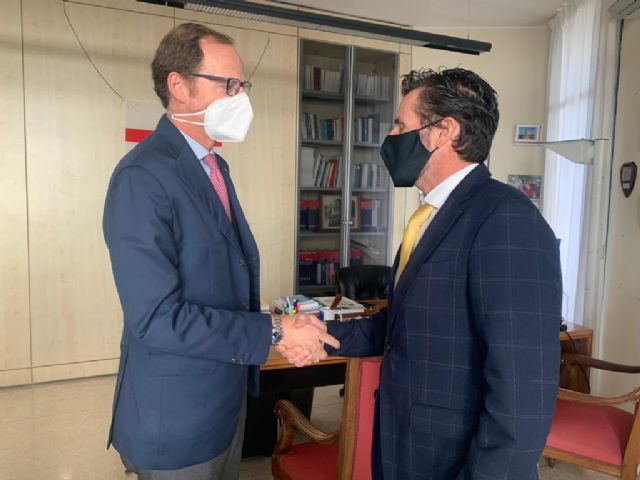 El alcalde de Murcia, José Antonio Serrano, y el alcalde de Génova, Marco Bucci, con motivo del hermanamiento de ambas ciudades que se producirá el próximo 17 de diciembre, abordarán la agenda de eventos y actos que van a desarrollar de manera conjunta durante el 2022 en el ámbito de la promoción cultural y turística, el trabajo en redes transnacionales y en la gestión de proyectos financiados por la UE.