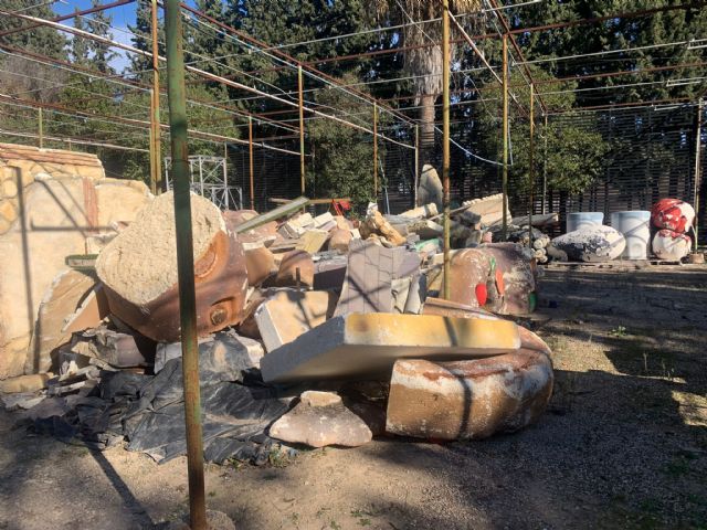 Mario Gómez se ha desplazado al vivero municipal `El Mayayo` dónde se encuentran los adornos navideños y los elementos decorativos y para su sorpresa “se encuentran totalmente abandonados”. Pero no solo los elementos de decoración navideña, sino que, “la mayor sorpresa ha sido encontrar totalmente destrozado la recreación del Cristo de Monteagudo en lo que llamaron `Los Jardines del Rey Lobo`; y lo que es peor aún, hasta la fecha no hemos encontrado de los elementos de `El Gran Huerto en 360 grados`”.