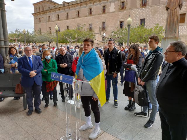 José Luis Mendoza, presidente de la UCAM, ha recordado que en la Universidad hay una comunidad de alumnos ucranianos que van a ser becados para que finalicen sus estudios de forma gratuita, y se les va a ayudar para que puedan reunirse con sus familiares en Murcia: "Vamos a entregarnos en cuerpo y alma a esta misión de ayudar y de servir, al tiempo que deseamos que se resuelva esta situación por el bien de la humanidad".