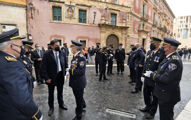 El Alcalde José Antonio Serrano, acompañado por el vicealcalde Mario Gómez y el concejal de Gestión Económica y Seguridad Ciudadana, Enrique Lorca, ha presidido esta mañana el acto institucional del Día de San Patricio, patrón de la Policía Local.