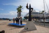 01/04/2022 Cartagena La escultura ´El abrazo´ da ya la bienvenida a los turistas que arriban al muelle de cruceros