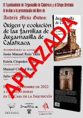 31/08/2022 Empresa Aplazada la presentación del libro "Origen y evolución de las familias de Argamasilla de Calatrava" de Andrés Mejia Godeo