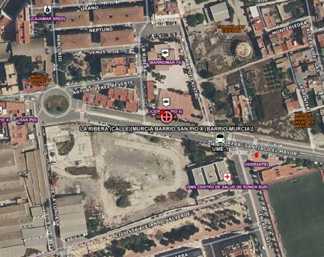 Servicios de emergencia han atendido y trasladado al hospital a un varón herido cuando jugaba al fútbol en un colegio del Barrio de San Pio X, Murcia.