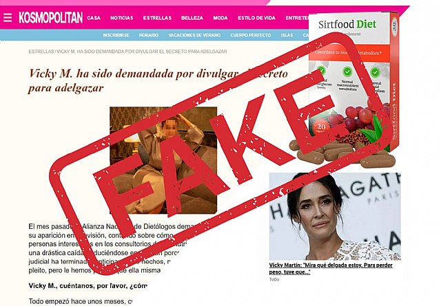 Aunque en la web fraudulenta aparecen las imágenes de Vicky Martín Berrocal pixeladas, cualquier usuario puede identificar con facilidad que se trata de este personaje famoso. En la parte inferior de la web, simulan igualmente comentarios de pacientes reales adulando el producto e incitando a los consumidores a su adquisición.