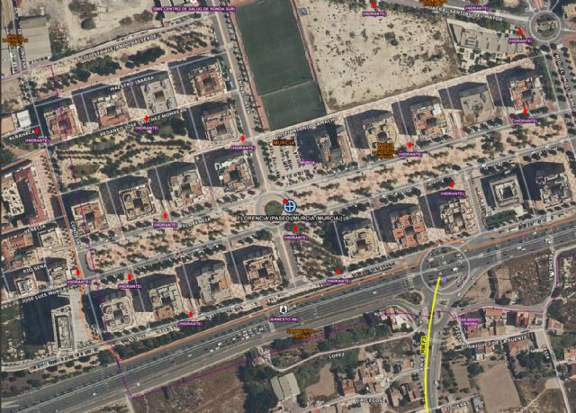 Servicios de emergencia atienden y trasladan a una herida en accidente de tráfico, en paseo Florencia (redonda de Enmedio), en el término municipal de Murcia.