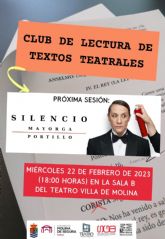31/01/2023 Molina de Segura Silencio, del escritor y dramaturgo Juan Mayorga, es la obra elegida para ser tratada en la próxima reunión del Club de Lectura de Textos Teatrales