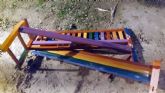 Esta mañana, tan solo 5 días después de reponerse el banco de madera decorado con la bandera arco íris en el barrio de Santa Mª de Gracia, ha vuelto a ser vandalizado a golpes.