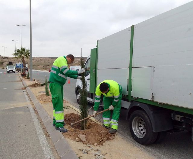 La Concejalía de Desarrollo Urbano y Ciudad Inteligente del Ayuntamiento de Murcia ha plantado recientemente 55 cipreses en las medianas de la zona norte del municipio, donde se encuentran los centros comerciales.
