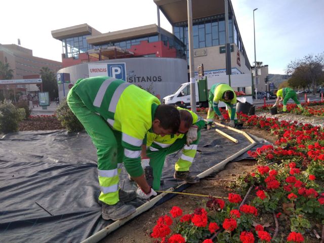 La Concejalía de Desarrollo Urbano y Ciudad Inteligente ha acometido los trabajos de mejora y reforma de la isleta ubicada delante del Hospital Virgen de la Arrixaca de Murcia, en El Palmar, la pedanía más poblada del municipio.