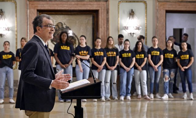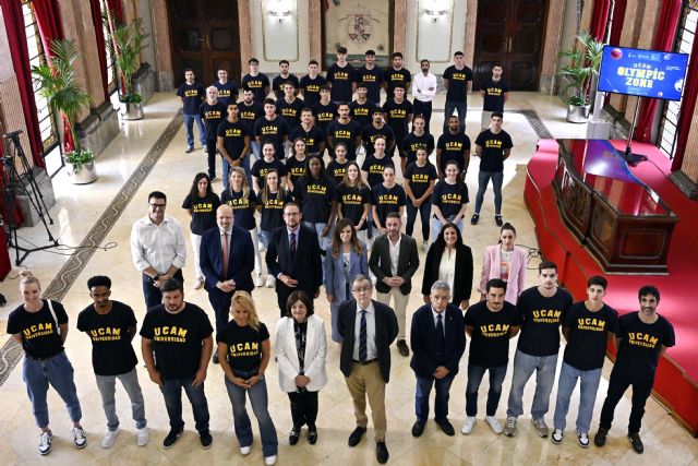 El alcalde de Murcia, José Ballesta, acompañado por presidenta de la UCAM, María Dolores García, así como del Director de Deportes del Comité Olímpico Español, Ricardo Leiva, ha recibido esta mañana en el Salón de Plenos del Ayuntamiento a medio centenar de deportistas UCAM, tanto de deportes individuales como de equipo, estando presentes medallistas olímpicos, campeones de España y del mundo, algunos de los cuales ya han conseguido clasificación para los juegos de París, como son el jugar de bádminton Pablo Abián; los taekwondokas Javier Pérez Polo y Adrián Vicente; la atleta María Pérez; la jugadora de baloncesto en silla de ruedas Sonia Ruiz, así como la jugadora de baloncesto Laura Gil. Asimismo, han estado presentes otros medallistas olímpicos como la levantadora Lydia Valentín, el piragüista David Cal y el karateca Damián Quintero.