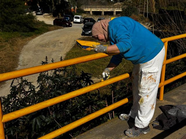Los trabajos llevados a cabo en Torreagüera han incluido la limpieza, el saneamiento de los soportes y el esmaltado antioxidante de los 300 metros que mide la barandilla perimetral en el Paseo Las Palmeras y han sido ejecutados por los alumnos que se cualifican en el certificado profesional de "Pintura decorativa en construcción".