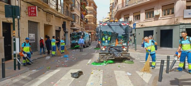 El refuerzo del servicio se adapta a cada una de las más de 200 procesiones, tanto del centro como en las pedanías: desde el Viernes de Dolores al Domingo de Resurrección, los equipos de limpieza actuarán una hora después de cada desfile, con especial atención a la hidrolimpieza nocturna, así como con otras labores como barrido mecánico, retirada de muebles voluminosos, y adecuación de entornos eclesiásticos.
