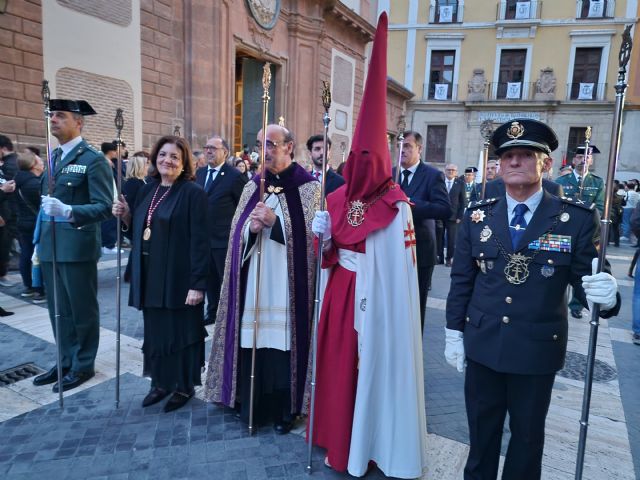 La presidenta de la Universidad, María Dolores García, encabezó la representación institucional, reafirmando el firme lazo que une a la UCAM con la Pontificia, Real, Hospitalaria y Primitiva Asociación del Santísimo Cristo de la Salud.