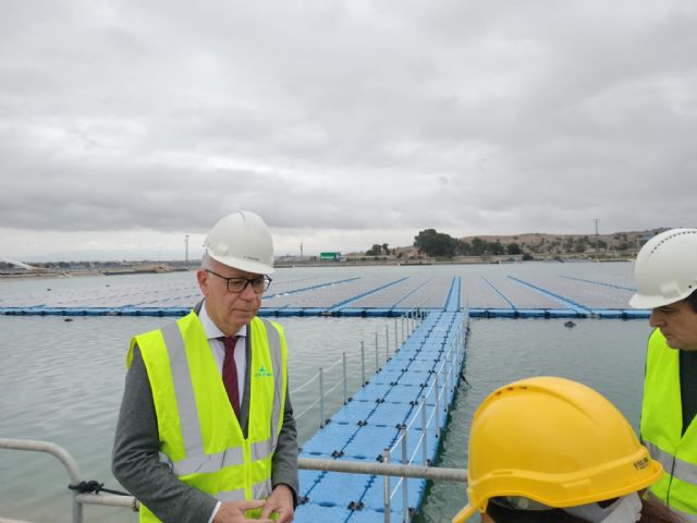 El concejal del ramo, Antonio Navarro, ha explicado que este proyecto, pionero en la Región, cuenta con dos fases de actuación y que en esta primera ya se han instalado 540 estructuras flotantes, de 565 W cada una, y con una producción de 300 kW/hora.