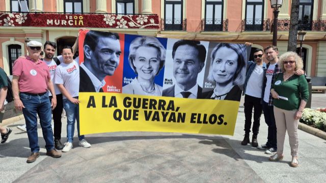 Podemos ha presentado esta mañana en la plaza del ayuntamiento de Murcia su campaña 'A la guerra, que vayan ellos'. Al respecto, el secretario de Participación de la formación morada en la Comunidad, Fernando Miñana, acompañado por otros militantes de la formación y de la asociación juvenil Rebeldía, señalaba que "en un día como hoy, 9 de mayo, se debería celebrar en todo el continente la paz, el fin de la guerra, del nacismo y del fascismo". "Sin embargo señalaba-, nos encontramos en un momento en que las políticas de toda la Unión Europea van encaminadas hacia el rearme, el rearme para una guerra contra un enemigo que desconocemos". "Una guerra inexistente frente a un genocidio cometido por Israel en el que la Unión Europea y España, particularmente, sigue siendo cómplice con la compra de armas a Israel, y también nos encontramos en un momento en que el fascismo avanza por toda Europa", apuntaba.