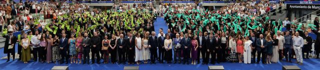 Esta tarde se ha celebrado el úlitimo de los ocho actos de graduación de este curso de la UCAM. El Palacio de los Deportes de Murcia ha acogido esta tarde la imposición de becas y entrega de diplomas a los estudiantes de las facultades de Deporte, y de Fisioterapia, Podología y Terapia Ocupacional, cuya ceremonia ha estado presidida por María Dolores García Mascarell, presidenta de la UCAM, siendo el padrino de los estudiantes, el doctor Pedro Guillén, fundador y presidente de la Clínica Cemtro, decano honorario de Medicina de la UCAM y director de la Cátedra de Traumatología del Deporte. La presidenta de la UCAM ha dirigido unas emotivas palabras a Pedro Guillén, del que ha dicho que "ha sido un querido colaborador nuestro desde que nació nuestra universidad y al que debemos una gran intercesión ente el cielo y ante la tierra".