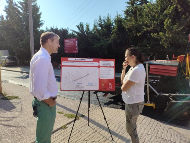 El Ayuntamiento de Murcia, a través de la Concejalía de Pedanías y Vertebración Territorial y en colaboración con la Junta Municipal de Espinardo, ha ejecutado las obras de refuerzo del firme en la calle Poeta Eduardo Flores, enmarcadas en el Plan de Pedanías, Diputaciones y Barrios Periféricos 2024-2025 y ha contado con una inversión de 10.883,95 euros, financiada mediante convenio entre el Ayuntamiento de Murcia y la Comunidad Autónoma de la Región de Murcia.