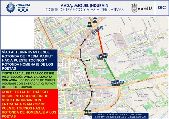 Este corte de tráfico viene acompañado de un dispositivo especial en que trabajan de forma coordinada Aguas de Murcia como encargada de los trabajos y los servicios de Policía Local y Tráfico con el objetivo de minimizar la afección.
