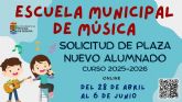 08/04/2025 Molina de Segura El plazo de presentación de solicitudes para acceder a la Escuela Municipal de Música de Molina de Segura comienza el lunes 28 de abril