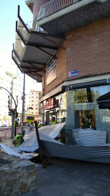 Entre las actuaciones más destacadas se encuentra la retirada del andamio y de los elementos desprendidos en la Plaza Circular, donde una chapa de protección de una obra se vio afectada por el viento. La zona quedó asegurada de inmediato, sin que se hayan producido daños personales, y la incidencia ha quedado completamente resuelta.