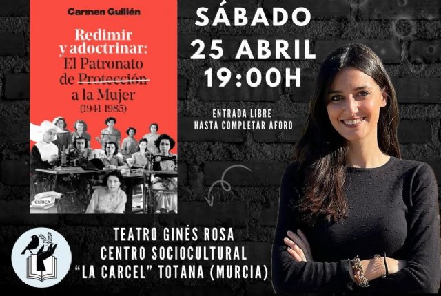 El próximo sábado 25 de abril, el Teatro Ginés Rosa, ubicado en el Centro Sociocultural “La Cárcel” de Totana, acogerá un importante acto cultural centrado en la memoria histórica. A partir de las 19:00 horas, la historiadora mazarronera Carmen Guillén presentará su libro "Redimir y adoctrinar: el Patronato de Protección a la Mujer (1941-1985)".