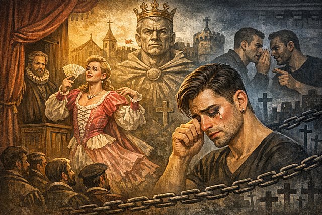 García plantea que uno de los posibles puntos de partida de este proceso podría situarse entre los siglos XV y XVI, coincidiendo con el auge del teatro occidental moderno. Durante ese periodo, explica el autor, las mujeres estaban relegadas a un papel social limitado, sin acceso a espacios de representación pública ni participación política. Esta exclusión generó una paradoja en el ámbito teatral: los escenarios necesitaban personajes femeninos, pero las mujeres tenían prohibido interpretarlos. Ante esta situación, fueron los hombres quienes asumieron esos roles, empleando vestimentas y gestualidad asociadas a lo femenino, una práctica que el autor vincula con el desarrollo posterior del transformismo escénico y del concepto cultural del drag.