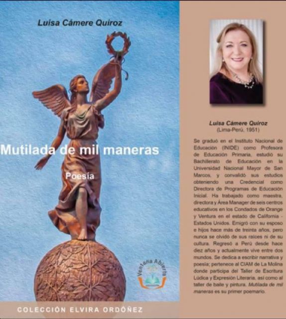 Estimado lector, permíteme presentarte aLuisa Cámere Quiroznacida en Lima, Perú el 30 de enero de 1951. Es una destacada docente en los niveles de educación primaria e inicial, reconocida escritora y poeta, así como gestora cultural comprometida a nivel internacional. Además, es una apasionada experta en artes visuales y, en julio de 2024, obtuvo el título de Crítica Literaria otorgado por la Academia Peruana de la Lengua. Cámere ha participado como jurado en varios concursos literarios internacionales.
