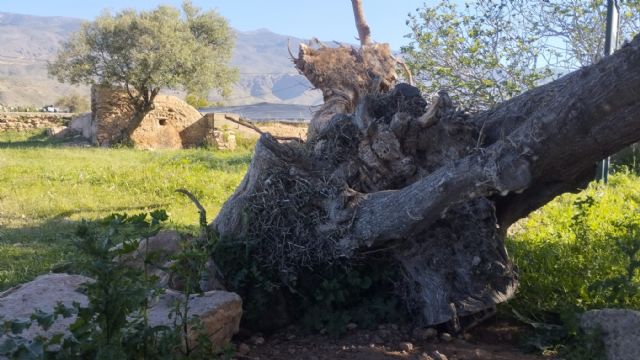 Uso la figura retórica de la prosopopeya para contarles que el viento, suponemos que las rachas huracanadas de febrero que alcanzaron 120 km/h, derribó al centenario Abuelo Acebuche, al que hace cinco años (¡cómo pasa el tiempo!) le dimos cualidades y emociones humanas para relacionar (siempre en mayúsculas) la Paz y la Educación Ambiental.
