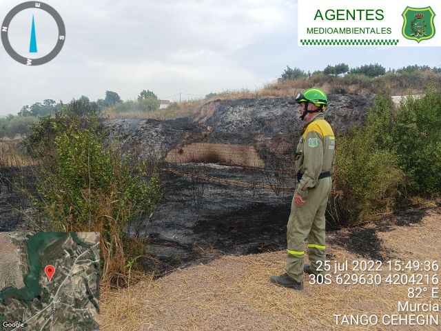 A las 15:04 el Centro de Coordinación de Emergencias 1-1-2 era alertado de un incendio en el municipio de Pliego, en el paraje de Atalayas, cerca de la cola del embalse de Pliego.